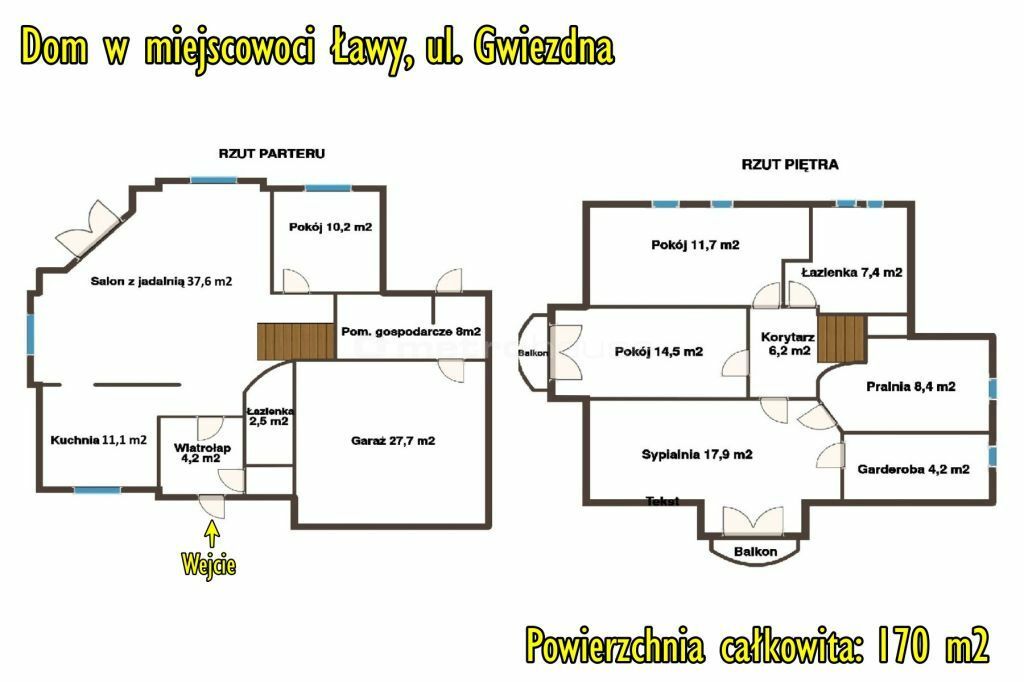 Na sprzedaż komfortowy, zadbany dom jednorodzinny o powierzchni całkowitej 170 m², położony w spokojnej i bardzo dobrze skomunikowanej miejscowości Ławy (07-411), ul. Gwiezdna. Nieruchomość idealna dla rodziny ceniącej przestrzeń, wysoki standard wykończenia oraz nowoczesne, energooszczędne rozwiązania.Przemyślany układ pomieszczeń